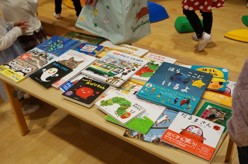 子どもたちは新しいおもちゃや絵本に目を輝かせて、手にとってみたり、跳んでみたり、とても喜んでいました😊